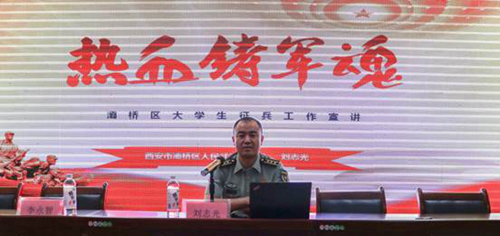 6月10日下午,灞桥区武装部部部长刘志光、干事李永智到西安海棠职业学院检查指导2021年征兵宣传工作,院团委书记张长东、各二级学院辅导员代表、适龄大学生150余人参加了此次会议,会议由团委书记张长东主持。