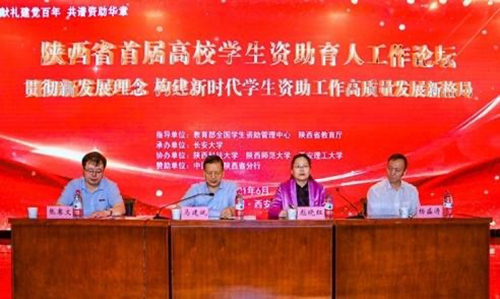 陕西省首届高校学生资助育人工作论坛于2021年6月18日在长安大学渭水校区举行。本次论坛以“贯彻新发展理念,构建新时代学生资助工作高质量发展新格局”为主题,聚焦学生资助工作未来发展方向,探索巩固拓展教育脱贫攻坚成果与乡村振兴有效衔接。论坛由教育部全国学生资助管理中心和省教育厅共同指导,长安大学承办,陕西科技大学、陕西师范大学、西安理工大学协办。出席本次论坛的领导有全国学生资助管理中心主任马建斌,陕西省教育厅财务处处长杨盛涛,长安大学校领导彪晓红,以及全省96所高校资助中心的资助工作者。在本次论坛中,与会者共享资助育人工作的成果,论坛为各方提供了交流经验的平台,也为推动学生资助工作作出了重要的贡献。