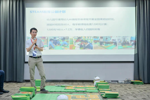 论坛会上,西安交通大学渤海研究院院长助理、高级工程师南军对“智慧幼教与机器人编程游戏化课程”课题成果进行了介绍。贝芽智能科技(苏州)有限公司课程部老师陈丽英为此次应邀前来参加课题发布会的园长及专家进行了“智慧幼教与机器人编程游戏化”现场操作与演示。随后,世界园长大会主席贺光辉主席对关于STEAM教育公益计划进行了讲解和说明。