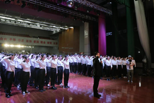 会上,党委副书记王立庭带领2021年新发展党员面向党旗,高举右拳,庄严宣誓,台下全体党员也一同重温入党誓词,表达了忠于党、守初心、践使命的坚定决心。