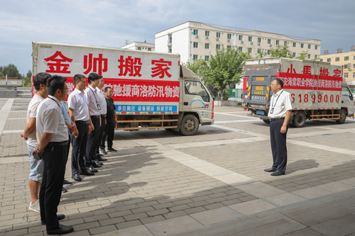 托运、聚集、装车,一切井然有序。7月27日上午10点,由王卓理事长带队,物资车辆和参与慰问的队伍在海棠职业学院冯居秦院长、海棠技师学院吕波院长的慰问和鼓励下,从学院统一出发奔赴灾区。