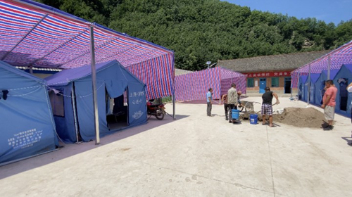 由于当地现有的临时帐篷不能满足防汛需求,此次西安海棠职业学院特意准备的钢架帐篷可以完美解决百余群众的临时居住需求。