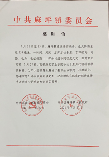 西安海棠职业学院王卓理事长一行赴洛南县麻坪镇进行灾后援助