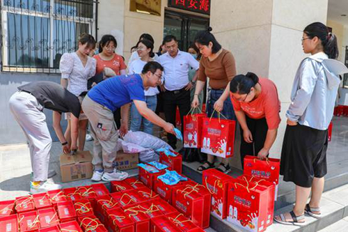 活动现场,工会主席赵景利为教职员工送上果粒奶昔礼盒、绿豆、冰糖等防暑降温物品,副院长高琦代表学院领导班子对奋斗在一线的教职员工表示感谢。