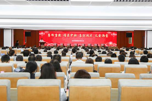 金风送爽,丹桂飘香。9月17日下午,值此中秋、国庆来临之际,在理事长王卓的关怀下,西安海棠职业学院在学术报告厅开展“尊师重教,情系中秋,喜迎国庆,大爱海棠”活动,为大家发放节日礼品,祝福大家度过一个团圆喜庆的节日,西安海棠职业学院全体教职员工参加。活动由副院长高琦主持。