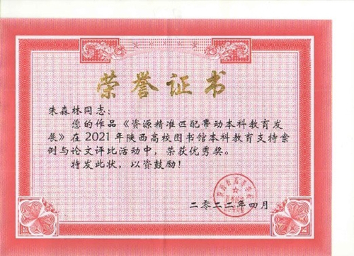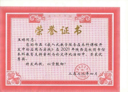 同时,图文信息中心学科馆员团队在本年度一系列学术研究和评奖活动中连续获得优异成绩。结合图文信息中心开展的学科服务实践活动,各位老师精心总结了相关案例和成果参与评选,其中,《图文信息中心与文化传媒学院课程共建》、《嵌入式教学服务在本科课程开发中的应用与实践》、《资源精准匹配带动本科教育发展》在陕西高校图书馆本科教育支持案例与论文评比中分别获得三等奖和优秀奖;《杜城村&古杜伯国》、《解密“欧小图”》在“传承的力量——校园周边文化故事”图书馆公众号系列推文展示与评比活动中分别获得二等奖和优秀奖。