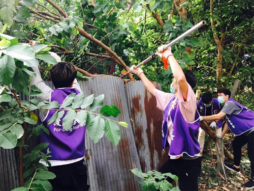 △当地学生和基金会联合,正在进行义工活动