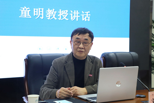 仪式结束后,童明(刘军)教授为师生们做了一场题为“西方文论的视野”的讲座。讲座涵盖文学的反习惯性特质、美学的判断等文学相关知识点,内容丰富、深入浅出,线上和线下互动频繁,师生们纷纷表示受益颇多。
