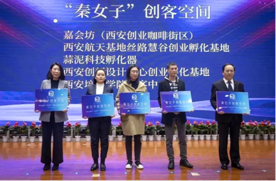 与会领导为首批5家“秦女子”创客空间授牌