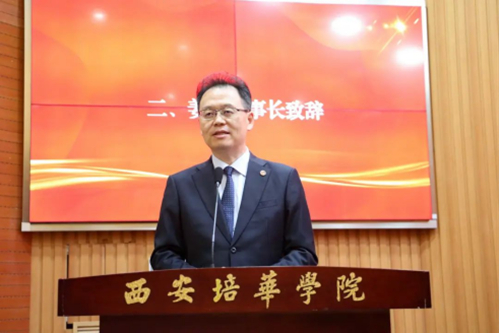姜波理事长致辞,他首先代表学校理事会对妇联成立表示祝贺,向各位代表表示问候,并向全体女教工和女大学生长期以来对妇女儿童事业所作出的努力表示感谢。他强调,姜维之老校长非常重视女性教育,培华妇联的成立,对于激励学校广大女教职工和女大学生踊跃投身妇女工作,谱写陕西省妇女事业发展的新的历史篇章,具有重大而深远的意义。希望培华妇联和工会携手共建,切实发挥好桥梁和纽带作用,勇挑重担,在全方位推动学校高质量发展、迈向培华百年梦想的进程中发挥好半边天作用。