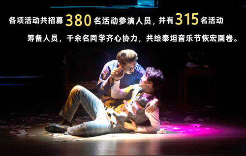 本季共组织音乐节活动12场,艺术教育中心、团委、各书院、各学院,多方联合,纷纷呈现。各项活动共招募380名活动参演人员,并有315名活动筹备人员,1000余名现场工作人员齐心协力,共绘泰坦音乐节恢宏画卷。
