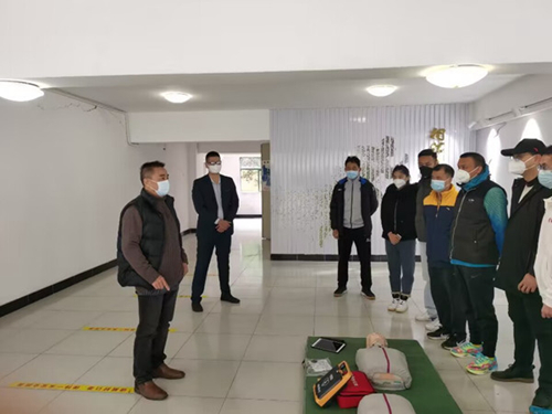 随后,王旭文从突发事故进行施救的法律支撑、施救的环境背景条件、紧急救援的操作规范流程三个方面进行培训讲解,重点讲授了实施紧急救援的正确操作步骤,详细介绍了体外除颤仪(AED)的操作步骤、利用仿生模型演示了心肺复苏的按压手法及实用操作。全体人员认真学习,积极提问,王旭文对现场提出的各项疑问都做了详细解答。