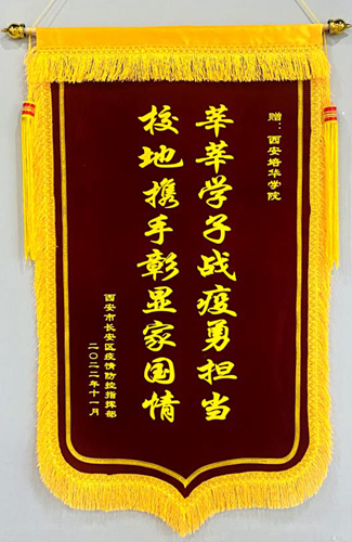 近日,西安培华学院支援长安区疫情防控流调工作的50名志愿者结束服务工作,经过四天健康监测、闭环转运,安全回到学校。长安区疾控中心党委副书记党旭、疾控中心副主任党红利、长安区郭杜开发区管委会副主任王静护送同学们返校并为学校送来锦旗。西安培华学院理事长姜波在学校明德楼楼迎接同学们凯旋。姜波理事长和长安区疾控相关领导一起为抗疫志愿者们颁发荣誉证书并与他们合影留念。