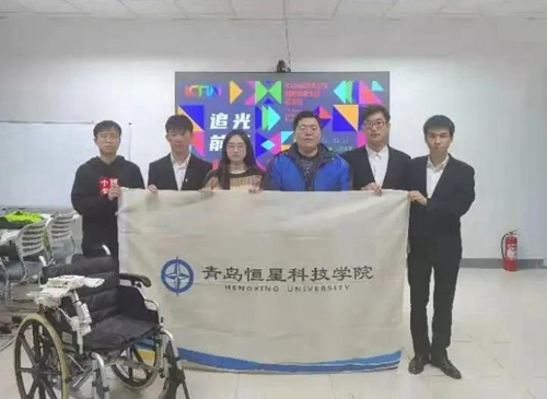 孙凯雯、卢兴宝、武卓、徐靖、苏武博的前臂轮椅支撑项目为青岛恒星科技学院争取到一等奖的荣誉。