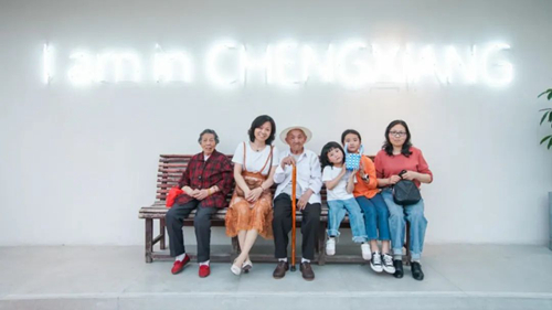 然后结合了国内一流的建筑师、设计师加入这个计划,同时改造了原来其他功能的大空间,里里外外大概有1万平米,目的是什么呢?给这个被遗忘的城镇重振的信心,我们也做了非常多的展览,同时做地方记忆的梳理,做一个地方的改造,得知道它从哪来,才知道它向哪去,就像一个人一样。这个地方很有意思,出过很多名人,包括流沙河,这些展览空间,都是普通人的历史、普通人的记忆,这些椅子其中有一部分是小镇的居民捐给我们,除了捐一把椅子给我们做展览,还捐赠他和那把椅子背后的故事。同时我们也做了非常多系列的讲座活动,比如说像今天这样的活动,邀请了成都非常有名的设计师,来探讨这个小镇应该往哪里去,包括跟无印良品合作,同时还做了建筑师在乡村、建筑师在城市的一系列展览,当然里面要植入一些商业的形态,比如说茶空间、咖啡空间、餐饮空间,我特别喜欢这张照片,这是当地的居民,他们拖家带口来这打卡,这个打卡和时尚的年轻人打卡还是不太一样的。