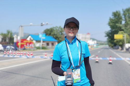 2021年7月中旬,体育与健康课程中心的洪岩秀老师被借调到十四运会组委会大型活动部开闭幕式保障组工作,负责全运会开闭幕式演员排练对接、场地时间协调、服装用车、志愿者、餐饮等各项需求保障事务工作。