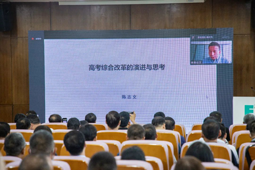 中国教育在线主编陈志文教授通过线上的方式进行了《高考改革的演进和思考》的主题报告,阐述了高考改革几十年走过的不平凡阶段,案例精典,分析透彻,切中了教育改革发展进入深水区的难点、关键点。创新性的提出了自己的建议与思考,为新高考改革提供了极其有益的指导和借鉴。