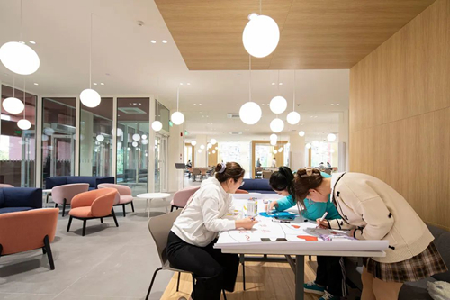 学校还为同学们创设了许多充满设计感的非正式学习场所,每到课余时间,大家在虹桥学生中心、南北区学生客厅、各教学楼公共学习区无尽地讨论,自由地想象,快乐地创造,直到深夜依然热火朝天。我们认为,从课堂之外的校园环境里所获得的知识、行为、态度与价值,对于学生的成长同样重要。