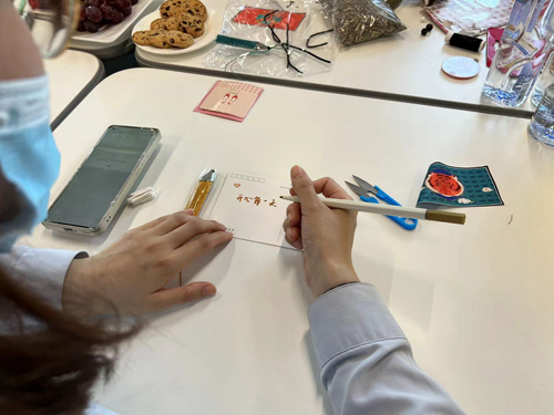 “将美好心愿传递,书写美好祝福”,活动开场,大家精心在明信片上面写下自己的祝福语和心底最美好的话语,一起分享喜悦,活动结束,大家随机抽取明信片,每个人都收到了来自他人的美好祝福,惊喜的表情溢于言表。
