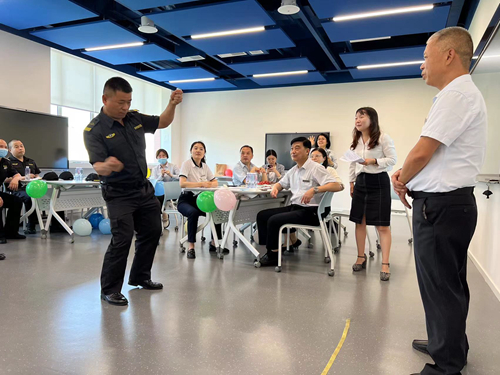 高人气游戏“你来比划我来猜”让大家开心玩起来,“遛狗”、“逛街”、“打乒乓球”,古今中外的词汇都有,就看你能不能猜到。比划的人手脚并用,面部表情丰富,差点真的“五体投地”,猜词的人用尽脸上的每一丝表情表达着“懵圈”,不放过每一个比划细节。每猜对一个词,大家都会报以热烈的掌声,现场气氛欢快轻松。