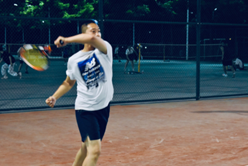 他最喜欢的地方是学校的网球场,每次竞赛任务重或是没有思路的时候,都会选择和网球社团的同学们一起在球场上挥洒汗水,释放压力。