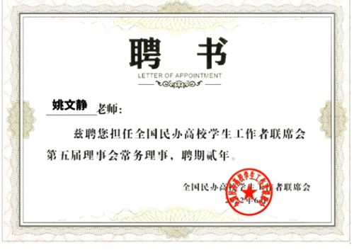 | 西安培华学院副校长姚文静当选全国民办高校学生工作者联席会第五届理事会常务理事 |