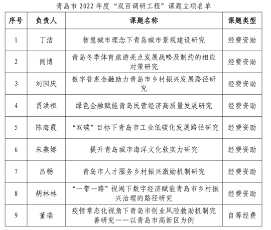 日前,青岛市“双百调研工程”领导小组办公室公布了“双百调研工程”2022年度课题立项名单,青岛恒星科技学院获批课题立项9项,其中,经费资助课题8项、自筹经费课题1项,位居青岛市同类高校首位,资助类课题每项获批经费支持10000元。