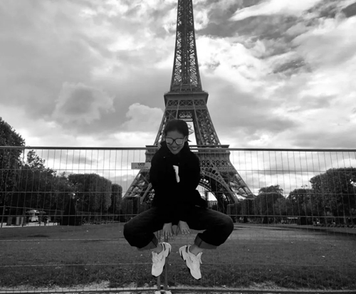 嘉雯在巴黎埃菲尔铁塔前