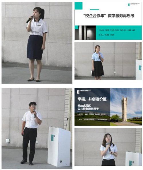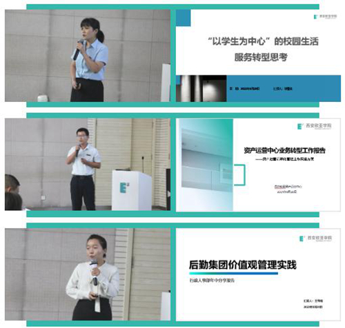 首先,由西安欧亚学院后勤集团总经理助理强建旗老师和后勤集团副总经理鲍凤杰老师从任务与成效、问题与反思以及思考与行动三个方面向大家进行了集团上半年的工作汇报。