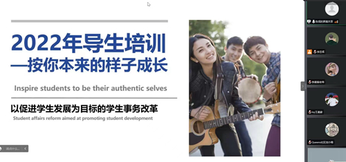 9月4日上午,西安欧亚学院2022级导生岗前培训及导生换届大会在线上举行,学生发展处处长助理张成老师、李嘉瑜老师、2022级新生辅导员及导生团队百余名师生参与本次导生岗前培训。