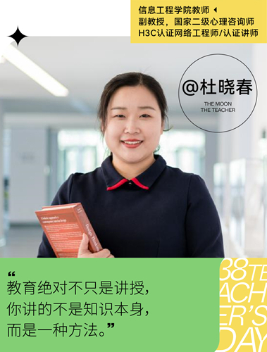 回想起自己成为老师前的时刻,杜老师说曾经觉得自己最不可能做的职业就是老师和医生,因为“比较急性子,耐心不够”,当她在自己的教学方法论中砥砺前行时,初次成为老师的一丝怀疑,已经在时光刻度中雕琢成为游刃有余的从容。“教育更多的是一种潜移默化,它绝对不只是讲授,不管是知识也好,你讲的不是知识本身,而是一种方法。”