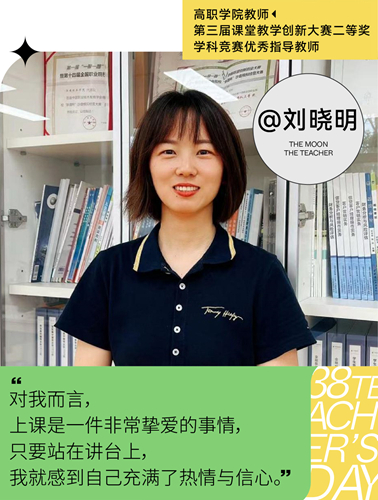 2021年的课堂教学创新大赛上,刘晓明老师取得二等奖。决赛现场,她带着学生们进入答疑环节,活跃的学生们当场创造出五花八门的回答,刘老师将所有字词耐心听完,而后缓缓拆解,正如她认为自己的课堂永远是鼓励学生的,“高职学院的孩子往往是不够自信的,可能受到过的批评式教育打击了他们的自信,但是他们在其他方面未必不优秀。