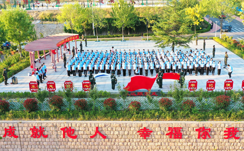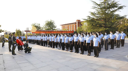 宣誓仪式正式开始,校国旗护卫队迈着整齐的步伐,铿锵有力地走向党建广场中心,在雄壮的国歌声中,全体师生庄严肃立,齐唱国歌,行注目礼。