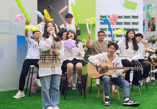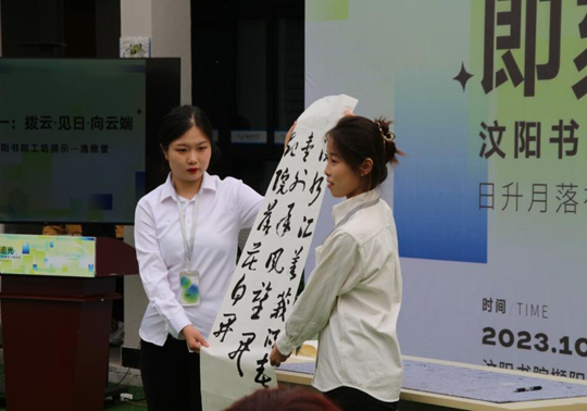 伴着歌声“向云端,山那边,书院里”拉开了整个仪式的序幕,汶阳书院学生会团队吹起《向云端》的青春号角,活动中一首首歌曲也代表着汶阳书院不断向阳而生的青春活力。汶阳书院师生共创的藏头诗“汶水汇菁莪,阳春一鉴开。书外承风起,院落花自开”也由逸雅堂工坊司维康同学挥毫泼墨跃然纸上,字里行间印刻着书院里的生机与美好。