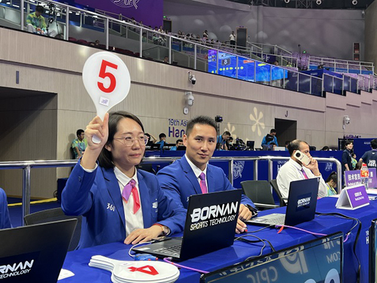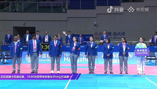 本届亚运会卡巴迪项目于10月2日至7日在杭州萧山瓜沥文化体育中心举行,共产生2枚金牌,有17支参赛队伍约255名运动员和教练员参与本项目的角逐。在为期6天的赛事执裁中,李静和刘一博两位老师分别担任了场上裁判、待赛区技术官员、赛前称重技术官员、电子记分员、电子计时员等五大类的裁判工作。