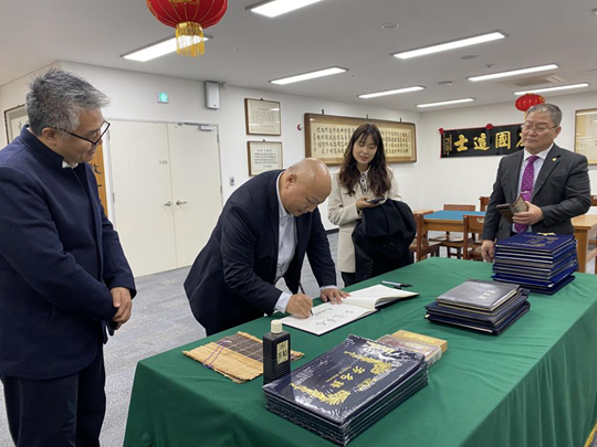 在清州大学,耿献文校长一行受到了清州大学校长金润培及相关人员的热情欢迎。双方共同回顾了过去的合作成果,并就教育资源共享、联合研究等方面进行了深入的探讨。耿献文校长与对方交流了中国书法文化,清州大学对我国的优秀传统文化表示高度赞赏,并表示愿意与泰山科技学院在更多领域开展合作,共同推动两所学校的共同发展。