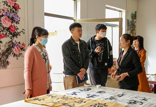 邱家店镇公共文化服务中心张主任带领泰山科技学院师生去往王林坡村大舞台观看王林坡村宣传片,王林坡村先后被授予“省级文明村”、“山东省美丽村居示范村”、“省级卫生村”、“山东先进基层党组织”,为泰山科技学院开展助力乡村振兴志愿服务活动打下坚实基础,宁文婷对当地工作中存在的问题提出了切实中肯的建议和对策。随后张思甜带领学校负责人参观泰山书画院,与学校非遗中心师生展开深入讨论。在参观过程中,王林坡标志性喷泉建筑,让前来参观的师生叹为观止搭配着湖边优美的音乐,体现出王林坡村富有特色的乡村文化建设。随后村委工作人员带领全体人员参观了社会实践基地。