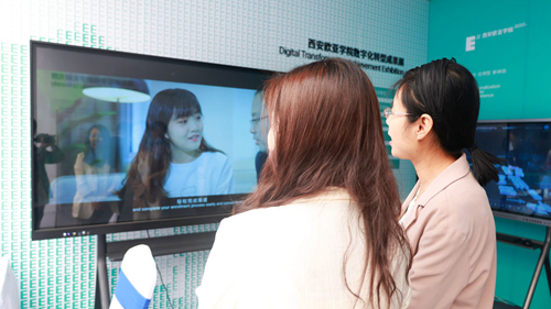 本次大会设有数字教育专题展区,西安欧亚学院作为高等学校智慧校园示范校参加展览,主题为“西安欧亚学院数字化转型成果展”,展示了学校在数字化转型工作上的发展历程、规划与实践成果,以及数字化研究院的整体业务情况,吸引了众多教育行政部门、各类学校的同仁前来参观。