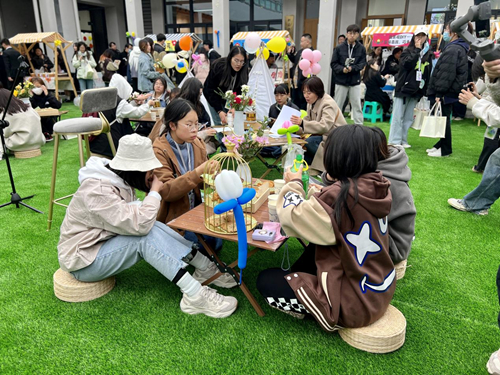 紧张激烈的赛后,花“画”世界、春“甜”花市随春风而来……由泰山科技学院各书院项目工坊、全生异科导师以及汶阳书院生活品鉴导师等共同组成的花花集市应约呈现,同学们坐于绿茵草地,伴着花香,尝一口美味的甜点,品一杯花式鸡尾酒,在书院里尽情享受春日与鲜花碰撞的浪漫。