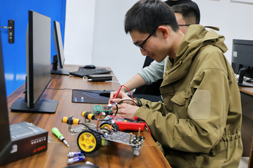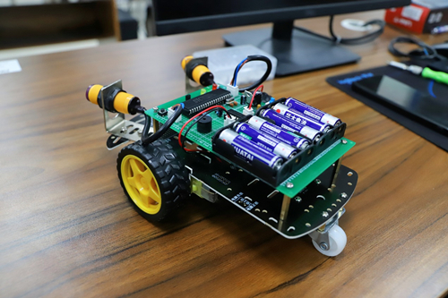 该竞赛是以智能小车为研究对象,辅以各种传感器设计组装的创意性科技竞赛,是面向泰科学子的一种探索性工程实践活动。在比赛前,参赛同学们已完成了智能小车的组装和编程,组装包括各部分的焊接和传感器的选择、安装,编程主要是通过程序让小车能够顺利避障。