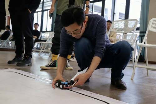 在比赛开始前,评委老师们先对小车的组装焊接以及外观设计等方面进行了点评。随后,由参赛选手们操控着自己的小车进行直线行驶。