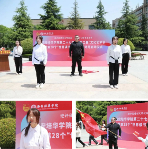 为深入学习贯彻党的二十大精神,落实立德树人根本任务,构建“三全育人”“五育并举”新格局,切实增强青年学生时代责任感和历史使命感,充分发挥高校思政育人主阵地作用,积极营造健康向上、丰富多彩的校园文化,以积极良好的青春风貌献礼培华建校九十五周年。4月25日,西安培华学院在综合楼西广场举办第二十七届“校园之春”文化艺术节暨第28个“世界读书日”主题活动月启动仪式。常务副校长胡俊生,党委副书记、副校长姚文静,校长助理、合作与发展办公室主任秦海锋,图书馆馆长吴小燕、副馆长闵波,教务管理中心副主任刘斌,学工部部长蔡亮、副部长姚斌、权勇太,校团委书记杨媛及各二级学院党委书记、团委书记及师生代表出席。