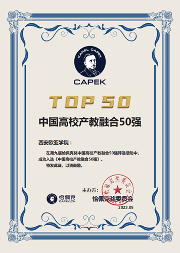 | 西安欧亚学院荣获恰佩克奖“中国高校产教融合50强” |