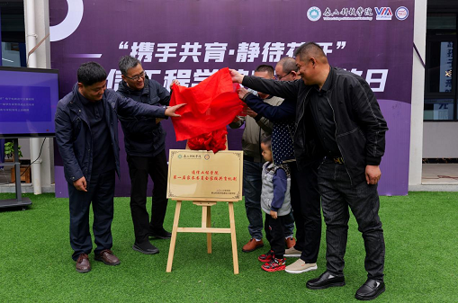 泰山科技学院通信工程学院学工办主任李海川老师宣布学院第一届学生家委员成立名单,并由王鑫鹏、金明达、宋海钰三位同学的家长与泰山科技学院校长助理曾广晟、通信工程学院院长助理闫晓兵老师一同上台揭牌,共同见证通信工程学院首届家长委员会成立。