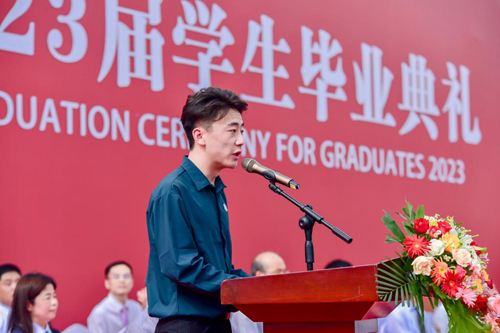 山东省第十届高校青年教师比赛奖获奖者、学校远景优秀教师百万奖励基金获得者、行政管理学院孙丽莎作为教师代表发言。孙丽莎从自己所授课程出发,回忆了自己在课堂上、在活动中、在生活里与同学们一起努力的经历和邂逅,去帮助大家友好地为所欲为。孙丽莎祝愿所有毕业生带着老师们的祝福、嘱托和期待,在人生的道路上展翅高飞。