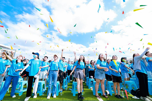 在现场主持人的号召下,毕业生们一起把手中的纸飞机飞向天空,把梦想和成长送给所有人。