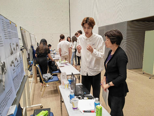 广州城市理工学院参赛队员给京都大学教授讲解作品(缪文南提供)