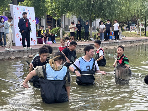 穿上橡胶战袍,请化身为“捕鱼达人”,当一回泰科九河“锦鲤战神”吧。炎炎夏日里最沉浸的劳动教育你要来体验一下吗?在九河,通过自己的亲身劳动,在镜湖里大展身手,抓住指尖的幸运,享受舌尖上的美味,体会一份人间烟火气。6月2日16:00,泰山科技学院九河书院之“渔”乐九河夏日限定活动如期开展。来来来!抄好渔网,更换套装,当用双手捧起硕果时,那是独属于你的Highlight!