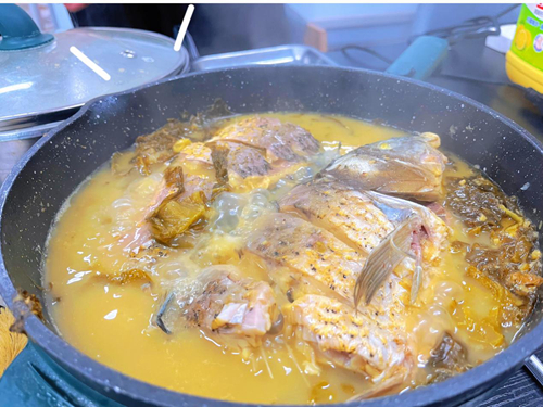将近两个小时的忙碌也接近尾声,大家清洗着各自捕到的鱼,用准备好的工具和调料,开始大显身手!每个小组凭借着自己的想法,烹饪出喜爱的美食。有清洗食材的,有改刀的,有帮忙递东西的,有烹饪的......