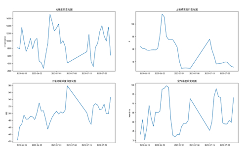 数字技术作为一种新的生产要素已成为农村现代化的重要支撑,不断融入乡村各类场景,重塑乡村结构,推动农业转型升级,推动农村持续进步,为实现高质量乡村振兴提供了全新的手段和工具。实践团通过太阳能控制箱与传感器连接设备,从7月24日开始收集当地环境数据,检测土壤中的氮磷钾浓度、二氧化碳含量、pH值、温度及湿度的变化,利用4G/5G网络传送至后台,为实现土地最优种植方案提供有力帮助,并利用土壤检测仪实地监测土壤,确保数据的准确性。基于监测数据绘制的可视化图形揭示了各指标数值呈现出一定的周期性规律,实践团成员通过对这些数据的分析,初步判断这些指标与当地气候和定期施肥有关,并将进一步深入研究和分析,寻找指标因素之间的关联性,为农作物的种植和决策提供更准确的参考依据。
